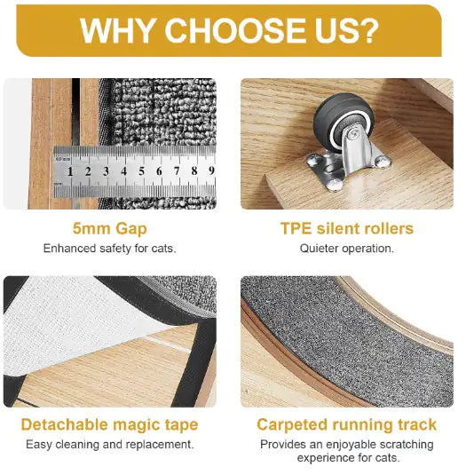 Keep your cat active, healthy, and entertained with this durable exercise wheel. Designed for indoor use, it provides a safe and fun way for cats to burn off energy, stay fit, and reduce boredom.